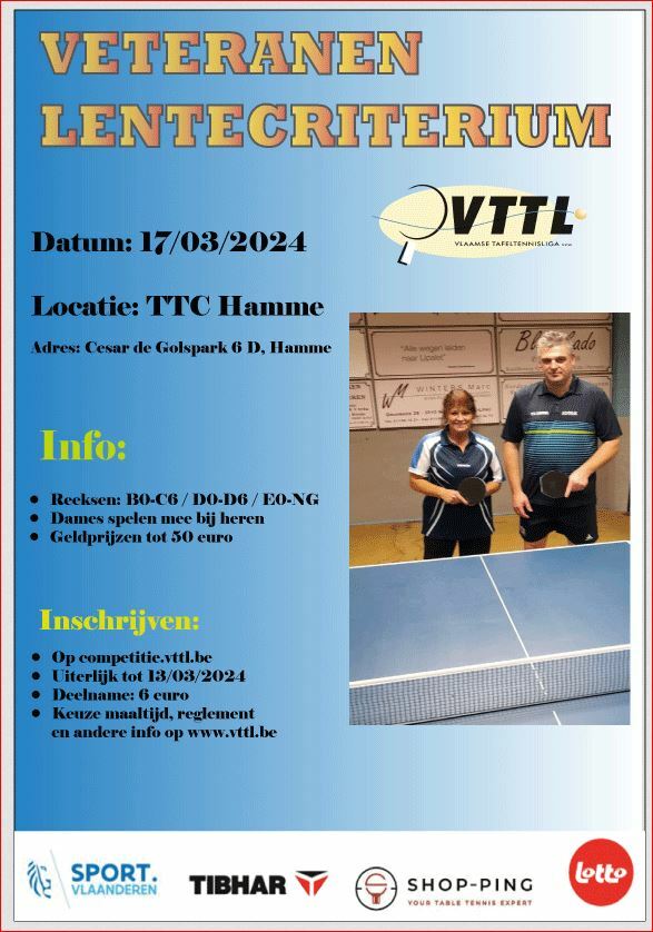 Tafeltennisclub Hamme, 76 jaar jong in 2025.