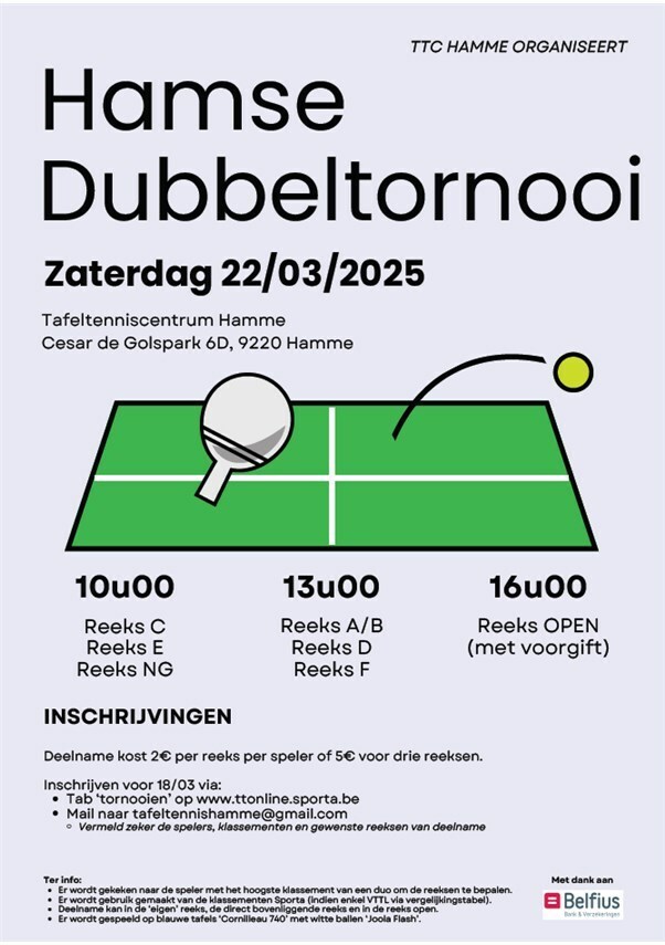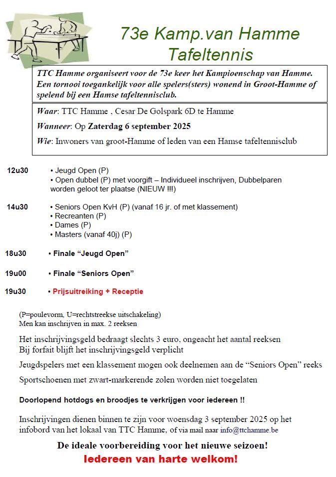 | TTC Hamme werft nieuwe leden aan! Bekijk de voorkant en de achterkant van de flyer van onze grote wervingscampagne |
