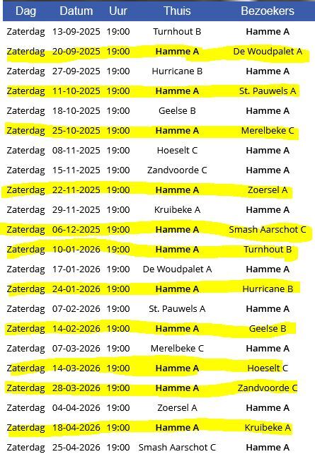 Op dinsdag 21 oktober speelt Hamme tegen Turnhout (ploeg van 3e nationale) voor de beker van België.