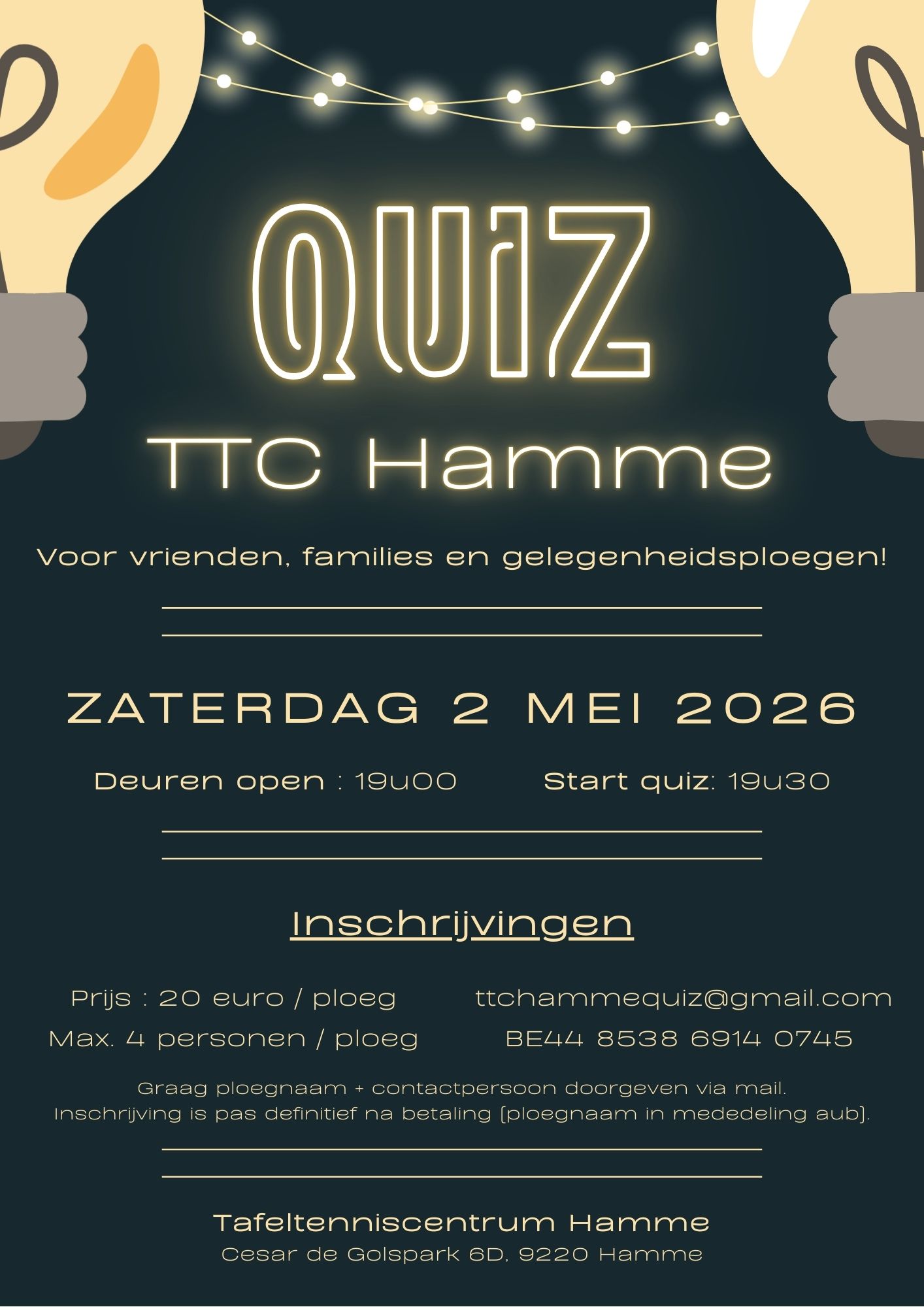Na enkele jaren onderbreking organiseert TTC Hamme opnieuw een quiz voor vrienden, families en gelegenheidsploegen.