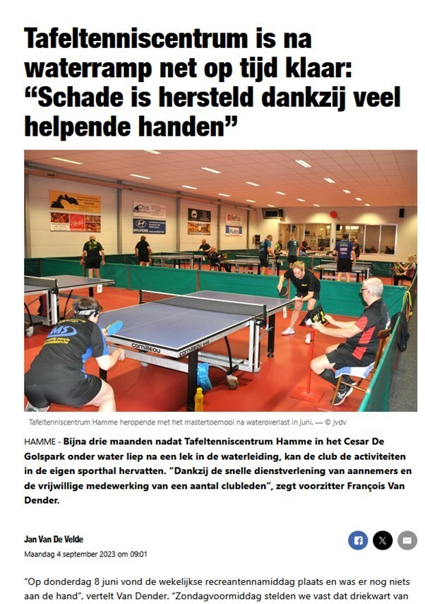 Renovatie na de waterschade in ons lokaal, lees wat de pers erover schrijft in het Nieuwsblad