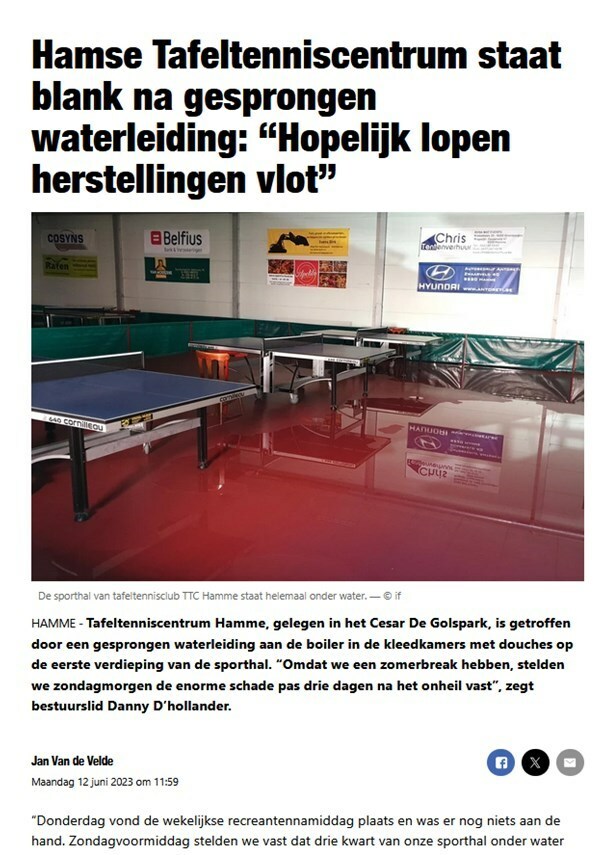 Waterschade in ons lokaal, lees wat de pers erover schrijft in het Nieuwsblad en het Laatste Nieuws