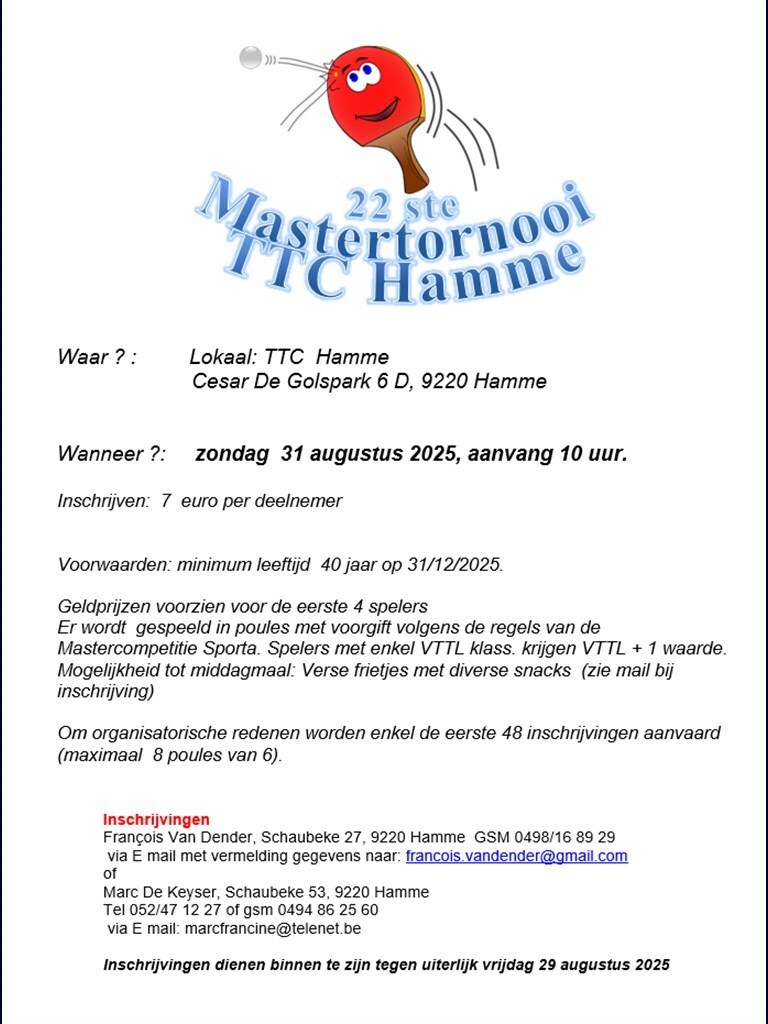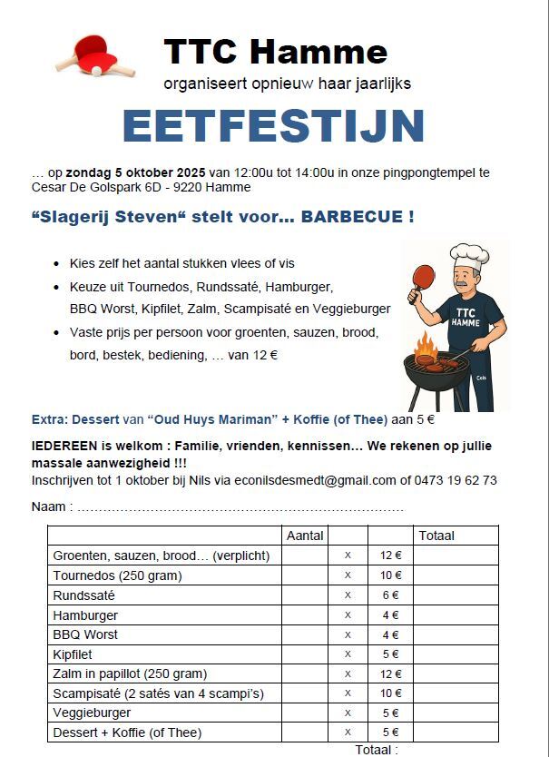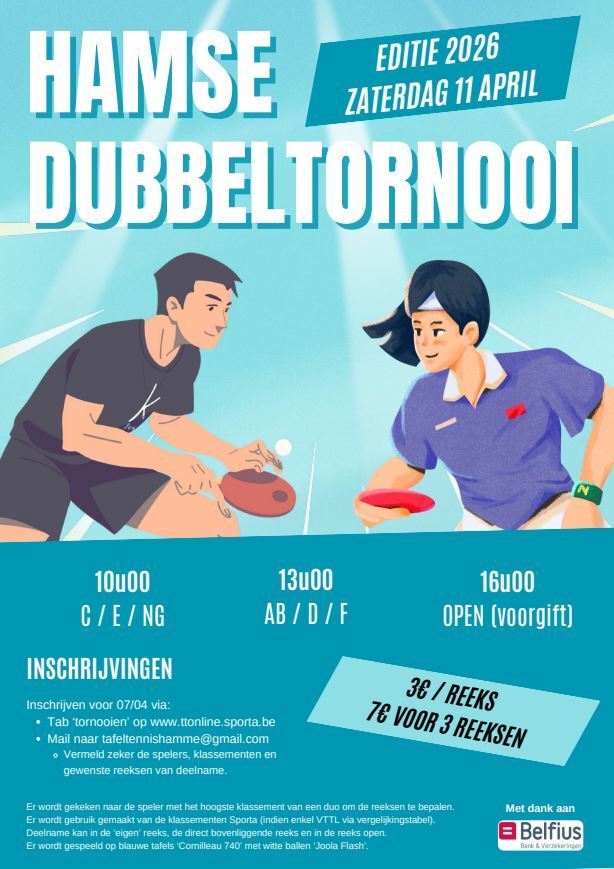 Tafeltennisclub Hamme, 76 jaar jong in 2025.